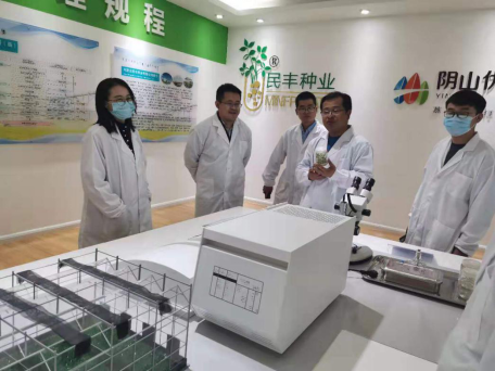 (通訊員 邢志芳)內蒙民豐種業公司于2019年榮獲首批“蒙”字標認證企業。2020年5月19日內蒙古標準化院所長許恒博、浪潮集團項目負責人王蘇東等一行就開展“蒙”字標認證產品馬鈴薯質量追溯平臺到我公司進行實地調研,我公司質量中心主任韓偉陪同并對公司情況進行了詳細介紹。
