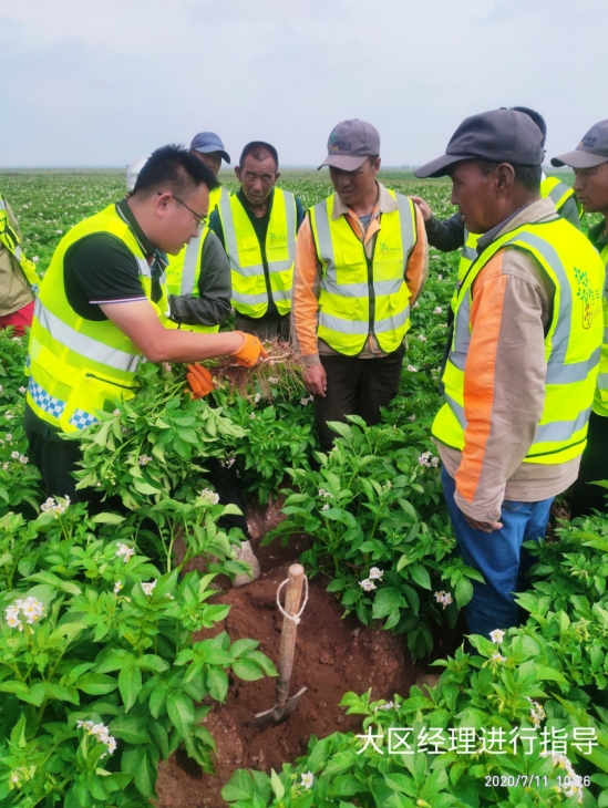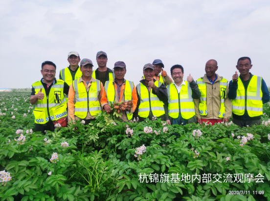 (通訊員 宋江江)2020年7月11日,民豐種業杭錦旗農場組織開展內部觀摩交流活動?;顒佑纱髤^經理、農藝師、管理員、基地經理、機手等13人參加,在大區經理門大偉的帶領下大家對各地塊馬鈴薯問題進行的探討、研究,針對各基地問題做到早發現,早溝通,早預防,就重大問題進行立項研討并提出改進方案及措施。同時,對管理成就突出的地塊進行現場學習,共享田間管理方面、經驗及做法。