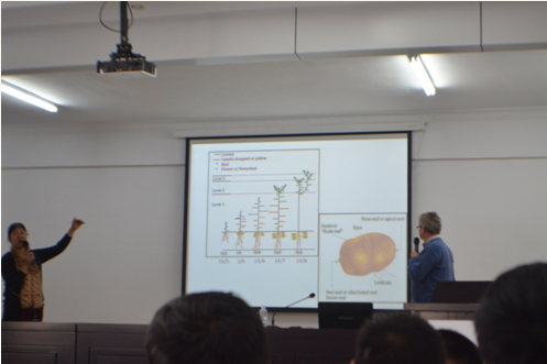 培訓會上,Harrie先生對馬鈴薯規范化種植管理的重要意義進行了深刻闡述,并就馬鈴薯各生長周期內易發、頻發的病蟲害及其防治措施與馬鈴薯種植、生產全程現代化管理等內容進行了講解,理論聯系實際,內容詳實全面,得到了參訓學員的廣泛認可。培訓全程為英語授課,為了使參訓學員能夠真正聽得懂、學得會,公司特聘內蒙古農業大學農學專業教授進行了全程翻譯。